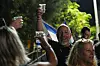 JUBEL: Det ble spontan feiring på det såkalte gissel-torget i Tel Aviv etter at avtalen ble annonsert i natt.