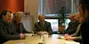 REDAKTØRTREFF: Redaktør Olav Terje Bergo (midt i bildet) i Bergensavisen går av. Her er han avbildet under et bispevisitas i bergensavisene i 2003. Til venstre sjefredaktør Einar Hålien i Bergens Tidende, Bjørgvin-biskop Ole D. Hagesæther, Bergo, sjefredaktør Odd Sverre Hove i DagenMagazinet og domprost Ørnulf Elseth.
