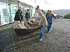 MENN: Mannfolk, som er etterspurt på norske bedehus, tar gjerne i et tak når noe praktisk skal gjøres, som her under klargjøringen av storstua Straume Forum på Sotra der en gammel trebåt skulle bæres på plass i lokalet.