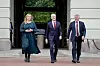 Etter et ekstraordinært statsråd hos kongen klokken 10, kom som ventet statsminister Jonas Gahr Støre ut på slottsplassen sammen med Stenseng og Skjæran.