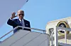 BESØKET SLUTT: President Joe Biden vinker farvel etter fire dager i Midtøsten.