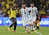 REKORDDYR: Moices Caicedo (t.v.) selges fra Brighton til Chelsea for en rekordhøy overgangssum. Her i duell med Argentinas Lionel Messi.