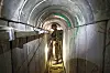 Tunnell: En israelsk soldat i en av Hamas tunneller som skulle brukes til terrorangrep inn i Israel.