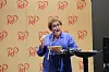 IKKE FORNØYD: Fredag talte partileder Olaug Bollestad (KrF) til landsstyret for sitt eget parti. Der gikk hun ut mot regjeringens friskole-politikk.