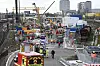 BOMBE: Brannmannskaper, ambulansepersonell og politi rykket ut etter en eksplosjon på en byggeplass i München onsdag. Fire personer ble skadd. Det var en bombe fra andre verdenskrig som gikk av. Foto: Sven Hoppe / AP / NTB