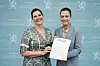 Direktør i Bufdir Hege Nilssen overrekker utredning om tredje juridisk kjønnskategori til kultur- og likestillingsminister Anette Trettebergstuen torsdag.