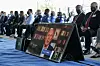 MINNEMARKERING: En skjerm viser tidligere president George W. Bushs tale under minnemarkeringen 20 år etter terrorangrepene 11. september.