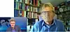 KRITISERES: Journalist Martin Krasnik (t.v.) i DR1 kritiseres i Danmark for sitt Skype-intervju med den norske legen Mads Gilbert om krigen i Gaza. Foto: Skjermdump fra DR1