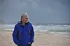 Han går langs strandkanten i den israelske kystbyen Ashdod, som grenser mot Middelhavet. 66-åringen trives med turer langs vannkanten, selv på dager som dette hvor det er øde, piskende regn og kaldt.