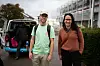 Reise: Ole Mathias Høyland og Helene Johansson frå Bibelskolen Fjellhaug på veg til Gardermoen der turen går vidare til Israel. Johansson har sjølv budd i Israel i sju år og snakkar hebraisk.