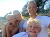 HVILE: Familien Kjøde prioriterer å hvile sammen. – Barna trenger det, sier Karl-Johan Kjøde. På bildet er han sammen med kona Katrine og sønnene Sigmund og Samuel på Sjøsanden i Mandal.