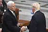 HANDTRYKK: Mike Pence var visepresident for Donald Trump, men har ikkje hatt kontakt med han sidan 2021.