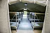 Inne i et tidligere kjøpesenter ved E6 i Råde i Østfold er det etablert en teltleir for flyktninger. Dette bildet er tatt før åpningen. Nå er bygningen full av nyankomne asylsøkere. Foto: Vegard Wivestad Grøtt / NTB scanpix