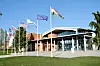 BUDAPEST, UNGARN: Solen skinner på det storslåtte inngangspartiet til den karismatiske megakirken Faith Church i utkanten av Budapest.
