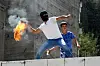 BRANNBOMBE: Arabiske ungdommer i Hebron angriper grensepoliti med brannbomber under «Raseriets dag». I Jerusalem ble fire politimenn skadet i et tilsvarende angrep.