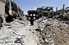 En palestinsk kvinne går ved ruinene av hus, som ble ødelagt av israelske rakettangrep under krigen på Gazastripen i fjor sommer. Foto: Ibraheem Abu Mustafa / Reuters / NTB scanpix