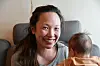 Thao Huyncek (30) smiler og titter ned på lille Rakel som kom til verden for to måneder siden.