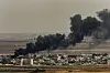 Angrep: Røyk stiger opp fra Ras al-Ayn i Syria etter et tyrkisk angrep søndag. Dette er en av flere byer med en betydelig kristen befolkning som er rammet av konflikten mellom Tyrkia og syriske kurdere.