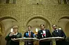 Det var fire smi­len­de par­la­men­ta­ris­ke le­de­re som fre­dag for­mid­dag som for førs­te gang kunne legge frem et re­sul­tat av bud­sjett­for­hand­lin­ger. De roste hver­and­re for sam­ar­bei­det.