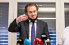 Advokat Nils Christian Nordhus holder pressekonferanse om den terrorsiktede kvinnen som ankom Norge med sine to barn natt til lørdag. Pressekonferansen finner sted i lokalene til advokatfirmaet Nordhus & Aarø i Oslo søndag. Foto: Håkon Mosvold Larsen, NTB scanpix