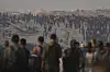 VENTER PÅ MAT: Lastebiler på vei med forsyninger til Gaza for et par dager siden. Det er nok mat i regionen til tre måneder sier Verdens matvareprogram.