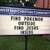 I USA har flere kirkelige oppslagstavler fått beskjeder som «Finn Pokémons utenfor - finn Jesus inne» og «Jesus bryr seg om Pokémon-spillere».