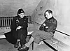 Oslo 1946: Siegfried Wolfgang Fehmer, kriminalrat og hauptsturmführer i Gestapo i Norge under 2. verdenskrig, ble dømt til døden 18 juni 1947. Før det skrev han en lang rapport om sin virksomhet i Norge. Her Fehmer fotografert sammen med en norsk politimann i en celle på Akershus festning. Foto: NTB arkiv