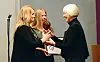 HJERTELIG: Annette Skeie Jakobsen (til venstre) og Elin Anita Verdal startet stiftelsen Livsglede for eldre og fikk mandag Livsvernprisen 2015. Fylkesmann i Oslo og Akershus, Valgerd Svarstad Haugland, overrakte statuetten, diplomet og blomstene og de rosende ordene.