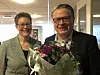 LEDER: Fungerende styreleder i NORME, Inger Marie Andersen Oppegård, gratulerer Hans Aage Gravaas med jobben som daglig leder i organisasjonen.