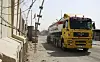 DRIVSTOFF: En lastebil med drivstoff krysser grenseovergangen Kerem Shalom på vei inn til Gaza. Grenseovergangen åpnet onsdag morgen etter å ha vært delvis stengt for varelevering siden 9. juli.