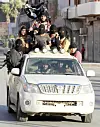 PARADE: Militante islamister har siden juni rykket inn i stadig flere byer og feiret opprettelsen av et islamsk kalifat, Den islamske staten (IS). Bildet er fra Raqqa-provinsen i Syria. Foto: Reuters / NTB Scanpix