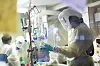 RASJONERER SYKEHUSPLASSER: Sykepleieren Jack Kingsley behandler en covid-19-pasient på St. Luke's Boise Medical Center i Boise den amerikanske delstaten Idaho i slutten av august. Sykehusene i delstaten har nå fått grønt lys til å rasjonere akuttplassene til de pasientene som har størst sjanse for å overleve.