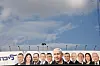 VALGKAMP: Valgplakater dominerer bybildet mange steder i Israel. Her ser statsminister Benjamin Netanyahu, og de ti som følger etter ham på Likud-listen, ned på bilister fra en bro i Jerusalem.