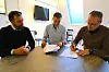 SIGNERING: (fra venstre) Øystein Gjerme, Jarle Naustvik og Fred Emil Bjerke signerer på avtalen mellom Pinsebevegelsen og Sendt Bort.