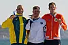 TOK GULL: Tom Reuveny fra Israel tok gull i vindsurfing gullmedalje, mens Grae Morris fra Australia og Luuc van Opzeeland fra Nederland tok sølv og bronse.