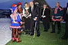 KAUTOKEINO: Riksarkivar Inga Bolstad (t.v.) og Kong Harald ankommer seremonien hvor dokumentet Lappekodisillen overførers til Samisk arkiv i Kautokeino tirsdag kveld. Foto: Terje Bendiksby / NTB