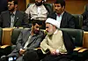 Tidligere president i Iran, Mahmoud Ahmadinejad i samtale med Sheikh Naim Qassem, som er valgt til ny leder for Hizbollah.