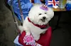 Tino the dog sits on a chair during the Big Lunch celebrations in London's Regent's Park, Sunday, May 7, 2023. Sunday, May 7, 2023. The Big Lunch is part of the weekend of celebrations for the Coronation of King Charles III. (AP Photo/Andreea Alexandru)