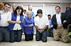 BØYDE KNÆR: President Juan Hernández (2 f.h) i bønn på kne sammen med sin familie. Bildet ble sendt ut til pressen under valgkampen i fjor, og bidro til at Hernández senere vant og ble president. Foto: NTB/ Scanpix