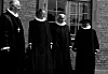 PRESTER: Den 28. april 1948 ble Johanne Andersen, Ruth Vermehren og Edith Brenneche-Petersen ordinert som de første kvinnelige prester i Danmark. Biskop Hans Øllgaard (til venstre) skrev kirkehistorie.
