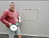 BABYLUKE: Den hjemmelagde leveringsluken under konstruksjon utenfor huset til Dick og Ronel Peters.
