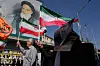 Iranere holder iranske flagg og en plakat av den øverste lederen, ayatolla Ali Khamenei, til høyre, foran et portrett av den avdøde revolusjonære grunnleggeren ayatolla Khomeini under en anti-israelsk demonstrasjon i høst.
