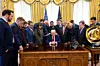 GJENTAKELSE: Donald Trump har flere ganger invitert kristne ledere til å be for ham rundt skrivebordet i Det ovale kontor.