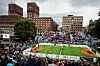 NYTT VM: Slik så det ut på Rådhusplassen i Oslo da Frelsesarmeen Norge var arrangør av VM i gatefotball i 2017. Til sommeren blir det nytt VM i hovedstaden.