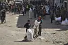 Palestinere med sekker med mel i Gaza by nord på Gazastripen.