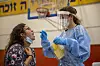 SMITTEVERN: En kvinne tester seg for korona i Binyamina, Israel, tirsdag 29. juni 2021. Landet måtte i forrige uke gjeninnføre en rekke smitteverntiltak, blant annet påbud av munnbind inne, melder TV 2.