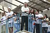 Mordi Oknin (i midten) og kona Natali var tilbake i Israel tirsdag. Foto: Ariel Schalit / AP / NTB