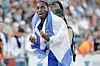 GULLVINNER: Blessing Afrifah feiret med det israelske flagget da han vant 200 meter i U23-EM.