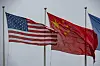 DIPLOMATI: Kinesisk og amerikansk flagg side om side.