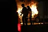 FRANKRIKE: Opprørspoliti ved en brennende bil i Strasbourg. Slike bilder har det vært mange av den siste uken. Kirkeledere ber om fred og rettferdighet.
